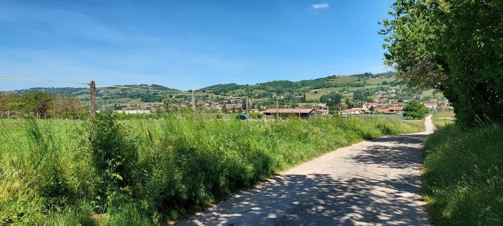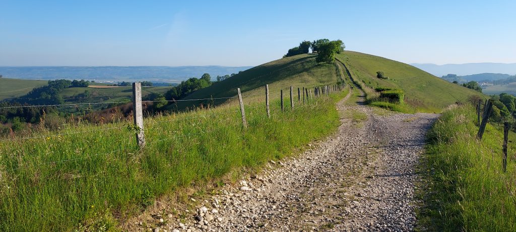Sur le chemin, nous croisons un paysage que je trouve sublime, le chemin qui serpente sur une colline qui domine l’ensemble du paysage. Le chemin disparait ensuite, laissant place à l’imagination.
