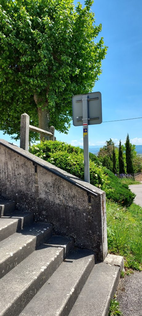 On contourne ensuite par la gauche l’aéroport de St Geoirs, 5Km de champs et c’est l’arrivée, enfin, à Gillonay. Je vais pouvoir prendre le GR65 “officiel”, bretelle entre Genève et Le Puy en Velay. Est-ce déjà le chemin de Compostelle ?
