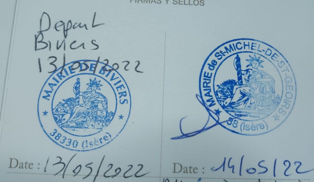 J’avais inauguré ma crédentiale avec le tampon de la mairie de Biviers et c’est avec plaisir que Monsieur le maire de St Michel me dédicace et inaugure la première étape de celle-ci.